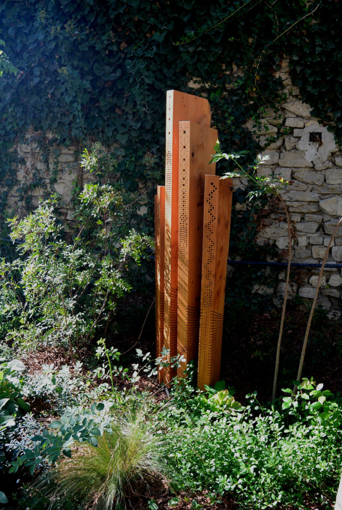 Les deux sculptures Entomologes intègrent ici l’aménagement paysager imaginé par l’architecte-paysagiste Sandra intervenant pour l’agence internationale d’architecture, d’urbanisme et de paysage ROUGERIE+TANGRAM basée à Paris et à Marseille, cabinet d’architecture qui réalise des équipements innovants emblématiques à travers le monde.