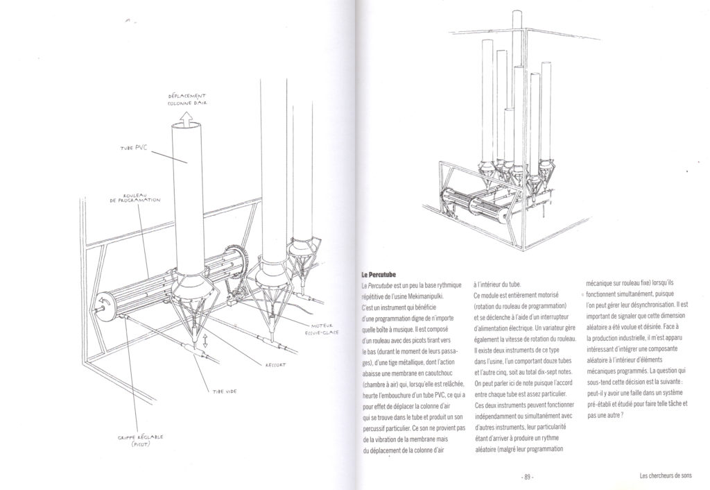 Sa production est une pièce sonore qui provient de mécanismes acoustiques. Certains sons produits sont ensuite “captés” par un dispositif d’amplification puis absorbés par le bureau d’étude.