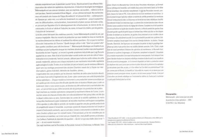 le CD “MEKIMANIPULKI pièce sonore pour une unité de production et deux opérateurs” est disponible pour un prix de 12 € + frais de port en me contactant